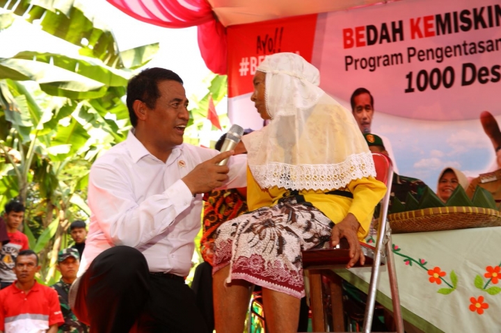 Purbalingga, 8 Mei 2018 - Menteri Pertanian, Andi Amran Sulaiman, meluncurkan Program Bedah Kemiskinan Rakyat Bekerja (BEKERJA) di Desa Sangkanayu, Kecamatan Mrebet, Purbalingga, Jawa Tengah. Kabupaten Purbalingga menjadi lokasi ketiga sasaran Program BEKERJA setelah Kabupaten Cianjur dan Kabupaten Magetan.