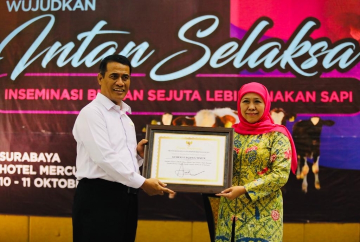 “Terima kasih semua pihak yang telah bersinergi atas prestasi ini. Terus kita tingkatkan dan kita tularkan kepada provinsi yang berminat,” kata Gubernur Jawa Timur Khofifah Indar Parawansa sesaat setelah menerima penghargaan. Menurutnya peningkatan produktivitas ternak sapi di Jatim dilakukan dengan sistem perkawinan inseminasi buatan (IB). Data Dinas Peternakan Propinsi Jawa Timur, hingga bulan September 2019, dari target 1.300.000 ekor sapi telah terealisasi 1.396.000 ekor sapi atau capaiannya 107%.