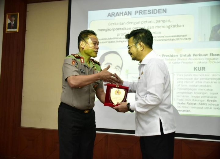 Jakarta - Menteri Pertanian (Mentan) Syahrul Yasin Limpo memberikan kuliah umum kepada mahasiswa Perguruan Tinggi Ilmu Kepolisian(PTIK) yang terdiri dari polisi perwira pertama dan perwira dua, Selasa (4/2/2020). Dalam kesempatan itu, Mentan minta para perwira polisi turut ikut serta menjadi pelopor kemajuan pertanian dan turut bersinergi untuk ketahanan pangan.