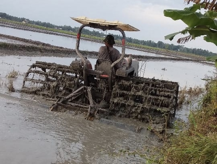 Pengolahan lahan maupun penanaman padi yang dilakukan semuanya mengunakan alat mesin pertanian (alsintan), baik itu traktor roda empat dan alat tanam padi (Rice Transplanter).