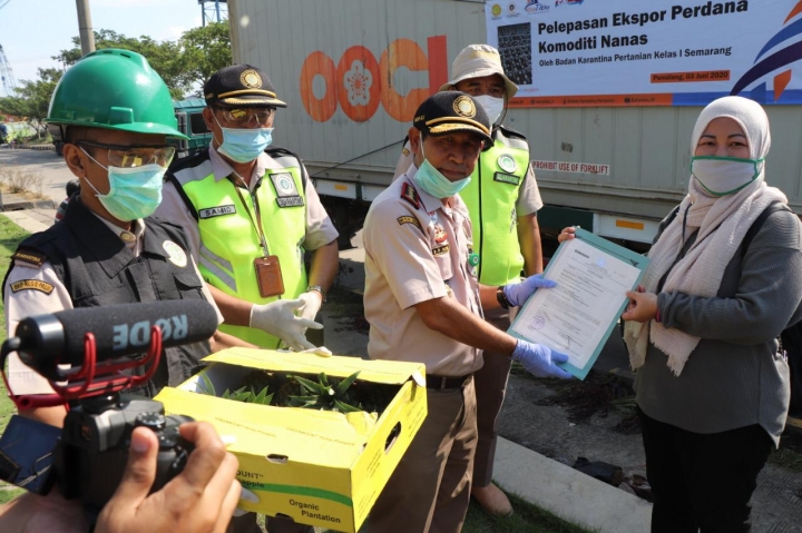 "Ini awal yang baik, 12 ton nanas segar, senilai Rp. 176 juta telah kami pastikan memenuhi persyaratan negara tujuan ekspor dan siap diberangkatkan, "kata Parlin Robert Sitanggang, Kepala Karantina Pertanian Semarang  di Depo Pelindo III Tanjung Emas Semarang, kemarin, (4/6).