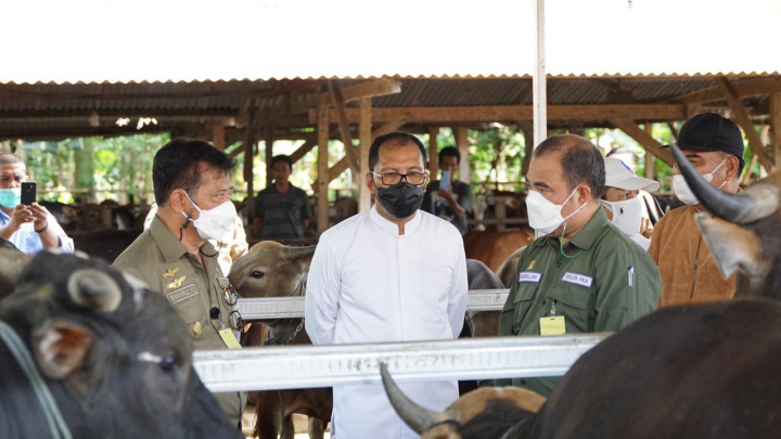 Makassar - Menteri Pertanian (Mentan) Syahrul Yasin Limpo meninjau Rumah Potong Hewan (RPH) Manggala di Kota Makassar, Sulawesi Selatan. Di sana, Mentan memastikan semua persiapan dan kesiapan penyelenggaraan kurban tetap dalam kondisi aman dan terkendali serta tertib dalam mematuhi aturan protokol kesehatan.