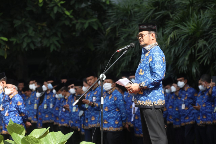 Jakarta- Menteri Pertanian Syahrul Yasin Limpo menyampaikan bahwa bersatu padu adalah harga mati yang harus dikuatkan untuk membangun ketangguhan pertanian nasional. Hal itu disampaikan Mentan saat memimpin upacara peringatan hari Sumpah Pemuda di lapangan kantor pusat Kementerian Pertanian, Jumat (28/10).
