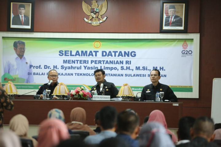 Menteri Pertanian Syahrul Yasin Limpo (Mentan SYL) melakukan kunjungan ke Balai Pengkajian Teknologi Pertanian (BPTP) Sulawesi Selatan guna mendorong semangat dan mempertajam perannya sebagai menjadi lokomotif peningkatan produksi pangan dan kesejahteraan, terutama menghadapi ancaman resesi ekonomi dunia. Pasalnya, BPTP sebagai unit pelaksana teknis Badan Standarisasi Instrumen Pertanian Kementerian Pertanian (Kementan) memiliki tugas utama memproduksi bibit atau benih sebanyak-banyaknya dan selanjutnya melakukan kegiatan pengembangan pangan.