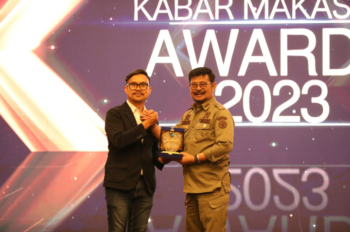 MAKASSAR - Menteri Pertanian Syahrul Yasin Limpo (Mentan SYL) dianugerahi penghargaan utama Kabar Makassar sebagai tokoh Sulawesi Selatan yang berpengaruh di tingkat nasional. Penghargaan ini diberikan langsung CEO Kabar Makassar, Upi Asmaradhana di Hotel Claro Makassar, Selasa, 29 Agustus 2023.