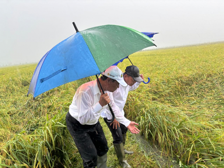 MERAUKE (17/4) - Menteri Pertanian (Mentan) Andi Amran Sulaiman bersama Wakil Menteri Pertahanan (Wamenhan) Muhammad Herindra meninjau jalannya panen raya padi di tengah-tengah hujan besar yang melanda Desa Kuper, Distrik Semangga, Kabupaten Merauke, Papua Selatan.
