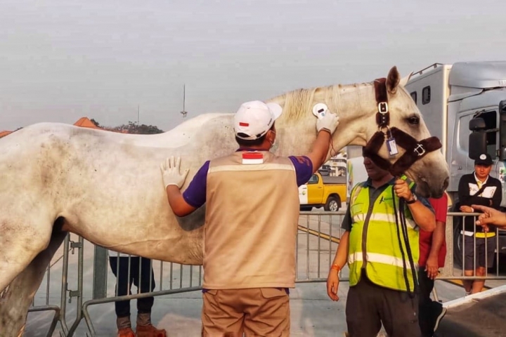Dengan datangnya 33 kuda dari Belgia hari ini, total ada 133 kuda dari 25 negara yang berada dalam pengawasan Badan Karantina Pertanian selama berada di area lomba JEP. Petugas karantina lakukan serangkaian tindakan untuk pastikan kesehatan kuda selama di JEP dalam kondisi sehat. Lalu lintas kuda, manusia maupun kendaraan yang keluar masuk lokasi equestrian harus melewati kolam bak berisi desinfektan (dipping). Desinfeksi dilakukan dengan menggunakan bahan yang sudah ada di Indonesia antara lain senyawa Peroxigen dan Asam Organik dan insektisida jenis cypermethrin. Hal ini dilakukan sebagai bagian dari Biosecurity.