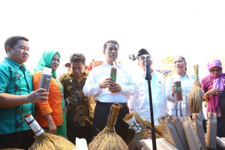 Penyediaan alat dan mesin pertanian seperti traktor, pompa air dan alat bantu tanam digunakan untuk produksi. Sementara Combine Harvester digunakan untuk menurunkan kehilangan hasil dan percepatan proses panen. “Kami juga memfasilitasi sertifikasi  beras organik, serta memberikan bantuan alat pasca panen Rice Milling Unit (RMU), packing, serta dryer atau alat pengering,” tambah Gatut.