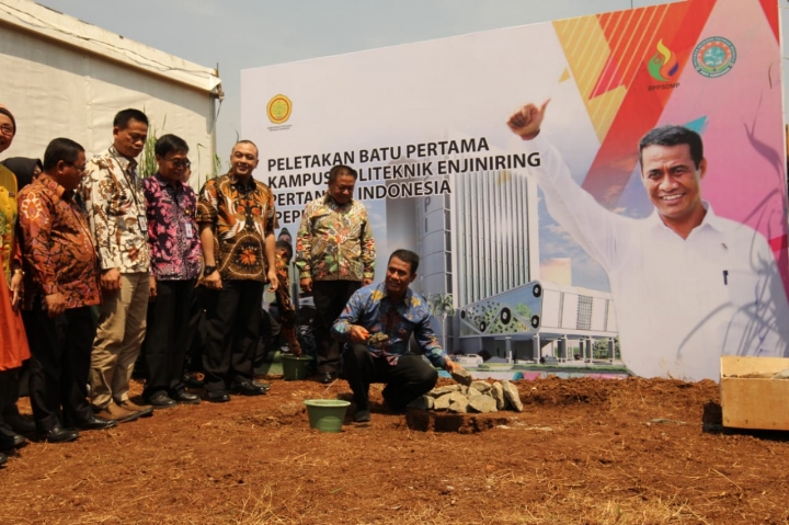 Tangerang - Menteri Pertanian (Mentan) Andi Amran Sulaiman melakukan peletakan batu pertama atau ground breaking pembangunan kampus Politeknik Enjiniring Pertanian Indonesia (PEPI) yang berlokasi di Tangerang, Banten (4/10/2019). Peletakan batu pertama ini menandai proses pembangunan PEPI seluas 4 hektar sebagai kampus Politeknik Enjenering Pertanian pertama dan satu-satunya di Indonesia.