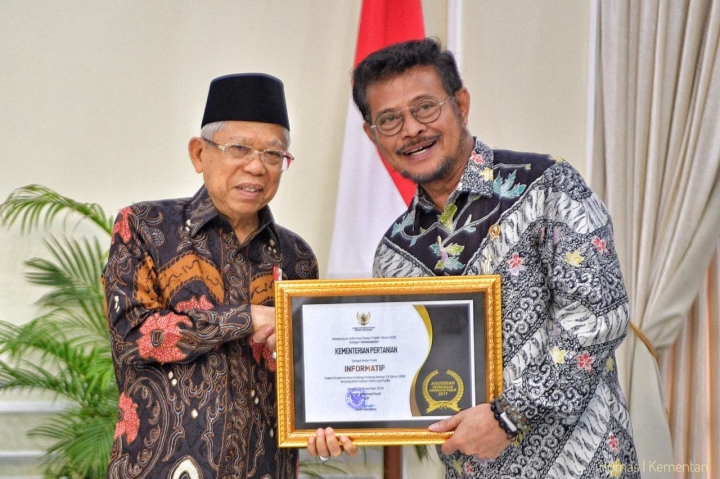 Menteri Pertanian, Syahrul Yasin Limpo, menerima penghargaan tersebut langsung dari Wakil Presiden RI, KH Ma’aruf Amin di Istana Wakil Presiden RI Jakarta, Kamis (21/11). Menurutnya, informasi menjadi energi yang mampu mengakselerasi proses pembangunan pertanian Indonesia kedepan, penghargaan sebagai badan publik “informatif” merupakan bentuk keseriusan Kementerian Pertanian dalam mengelola informasi secara luas dan terbuka.