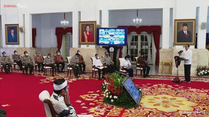 Jakarta - Presiden Republik Indonesia, Joko Widodo membuka Rapat Kerja Nasional (Rakernas) Pembangunan Pertanian Tahun 2021 yang digelar secara virtual di Istana Negara, Senin, 11 Januari 2021. Dalam sambutanya Presiden Joko Widodo menyampaikan dalam kondisi Pandemi covid-19 sektor petanian menempati posisi yang semakin sentral, untuk itu Presiden menghimbau untuk berhati-hati, akibat adanya pembatasan mobiltas warga, bahkan distribusi barang antar negara serta distribusi pangan dunia.